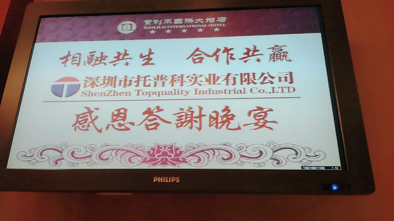 2017年6月2日,深圳市托普科實業(yè)有限公司感恩答謝晚宴在深圳福永寶利來國際大酒店拉開帷幕,“相融共生,合作共贏”是我們托普科這次感恩答謝晚宴的主題。答謝會除了表達對在場所有人員的感謝,更是打開大門,齊聚一堂,一起回顧了托普科十八年的歷程,感受品牌力量,分享品牌光芒,齊賞精彩節(jié)目表演,共襄盛舉。